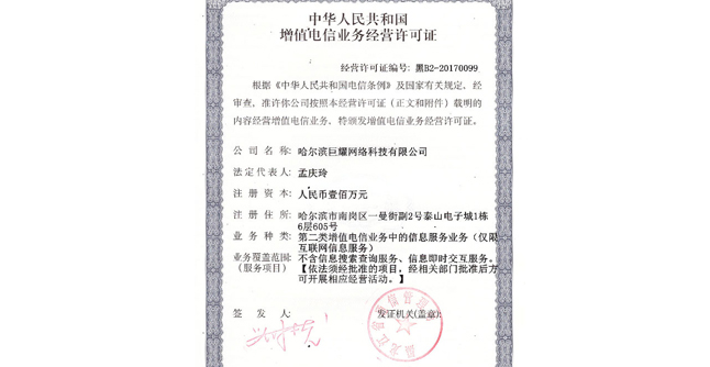| 哈爾濱巨耀網(wǎng)絡(luò)科技有限公司·版權(quán)所有 | 地址:哈爾濱市南崗區(qū)西大直街118號哈特大廈17層 |